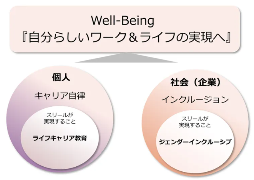 スリールのミッションでもある「自分らしいワーク&ライフ」を実現するためには、個人の「キャリア自律」と、それを受け入れ認める「インクルーシブな環境づくり」、この両輪を回すことが不可欠です。